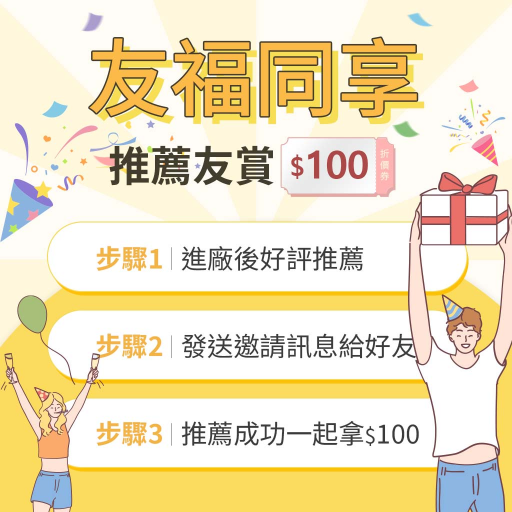 2025/9/15 起,【#進廠保修後】透過滿意度調查給5分或使用自有禮物券,推薦好友加入慶通汽車會員 雙方各獲得 $100 推薦禮金!