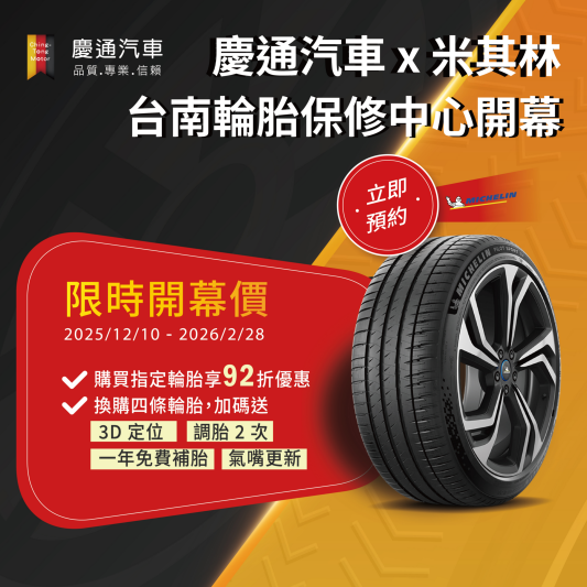 慶通汽車x米其林 I台南輪胎保修中心開幕大優惠!